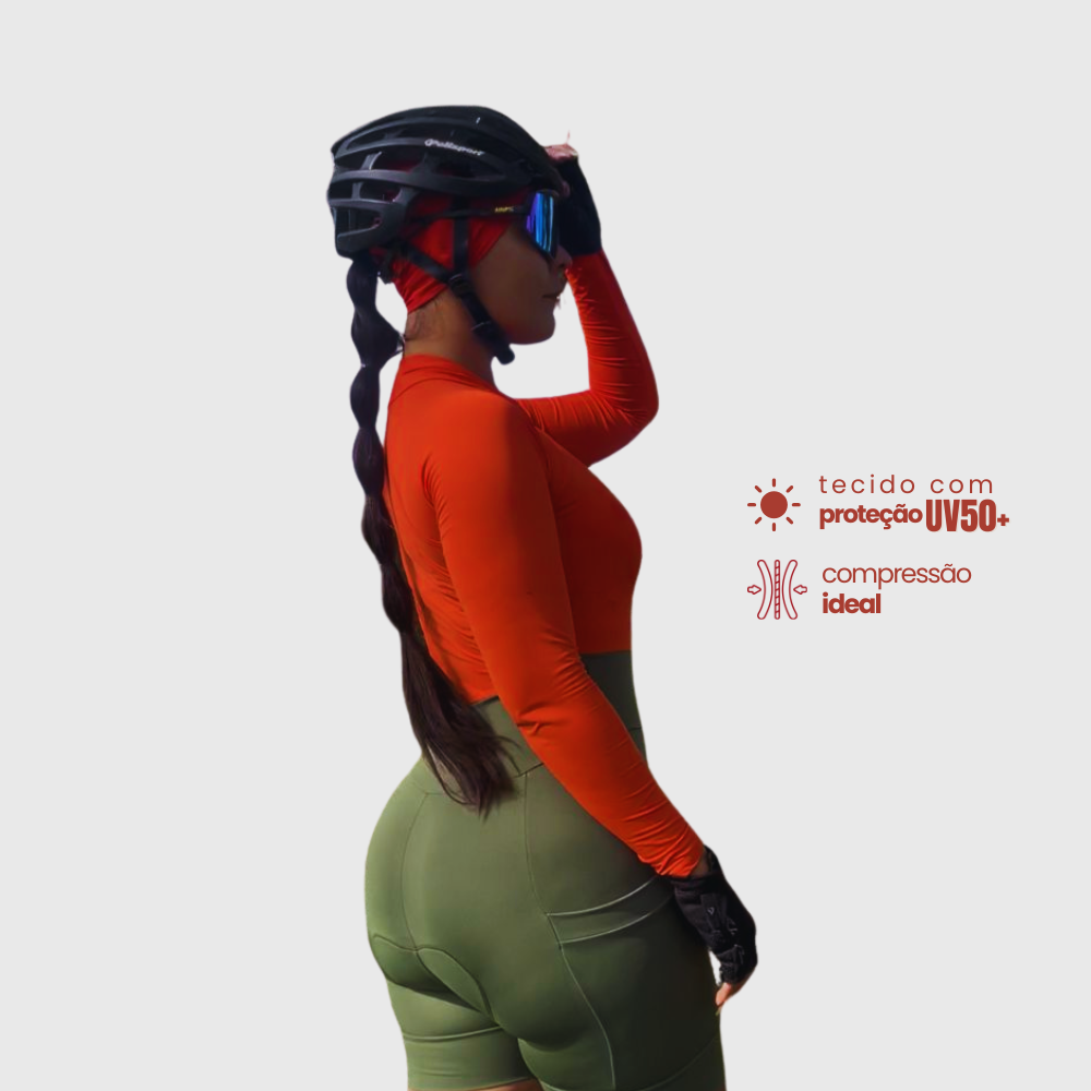 O Macaquinho de ciclismo DONA DO PEDAL PREMIUM é produzido em poliamida e todo com proteção UV50 . O tecido tem gramatura de 320 para evitar a transparência no uso.